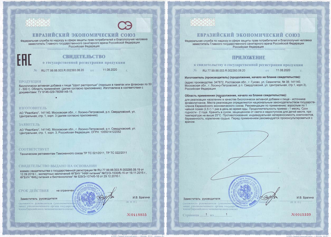 Dietary supplement "Flax seeds" has the registration of the Russian Federal Service for Surveillance on Consumer Rights Protection and Human Wellbeing (Rospotrebnadzor).